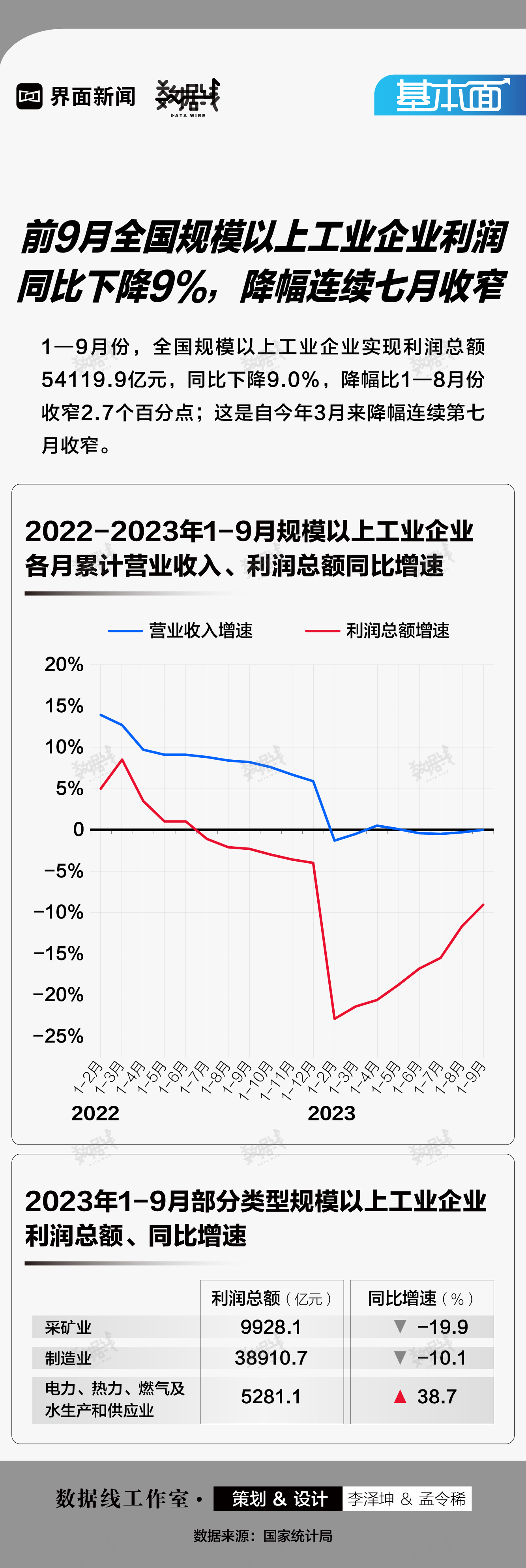 基本面 | 前9月全国规模以上工业企业利润同比下降9%,降幅连续七月收窄