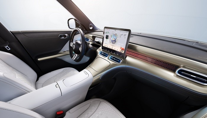 内饰方面,极越01提供三种配色,配备有35.6英寸的超清中控屏和创新的U型半幅式方向盘。为了弥补物理按键的缺失,新车在语音交互系统上进行了创新,支持车内外激活和全域离线语音识别,无网络也能保持操作。