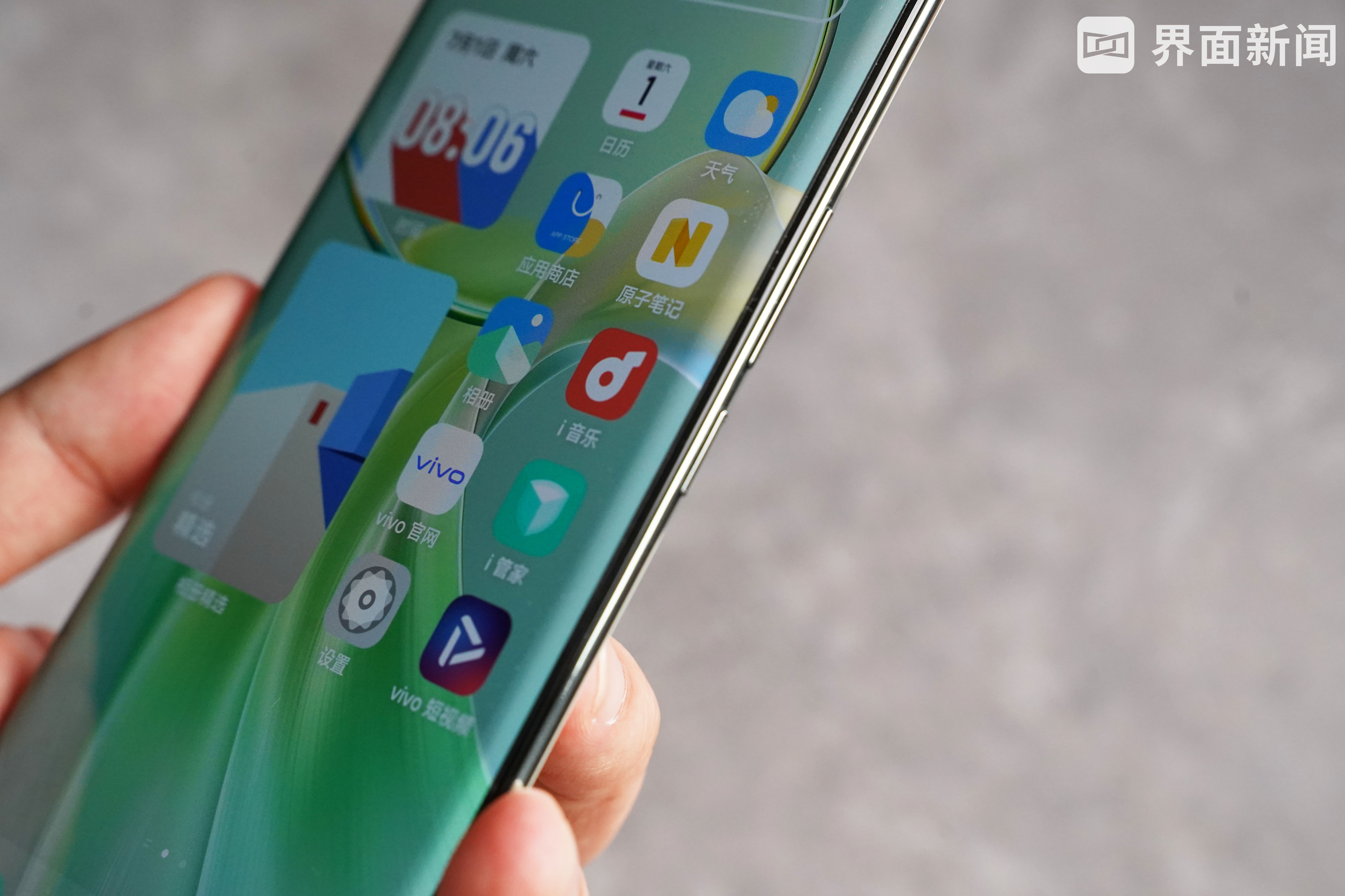 值得留意的是,由于vivo Y100是曲面屏,外加边框较窄,使得新机的屏占比来到了93.3%。除了观感上会更加开阔以外,屏占比的提高也能给予手机更精致的质感。
