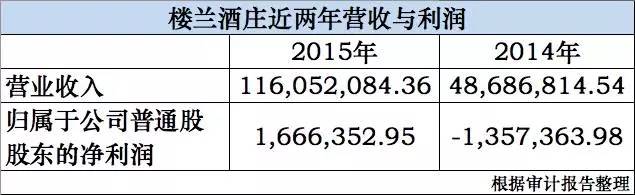 查阅新三板披露的数据,2015年,楼兰实际销售1.16亿,净利润166.6万。而这两个数字在2014年,分别是4800多万以及亏损135万。