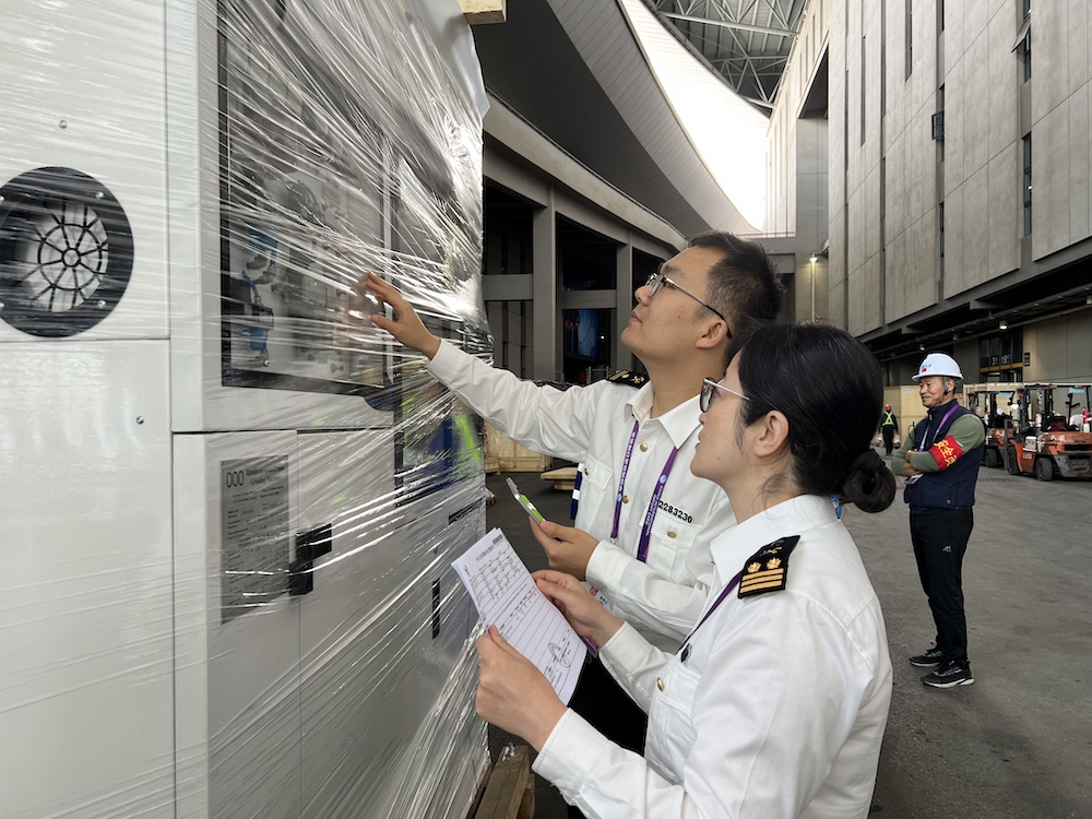 “这票货物是我们公司在今年进博会中代理进口的非常重要的展品,重量大、价值高。以往遇到口岸检查时需要协调吊机进行作业,组织实施难度大,而且精密仪器类展品开拆包装检查后复原难度大。”东浩兰生上海依佩克国际运输有限公司展运部副经理沈凌透露。