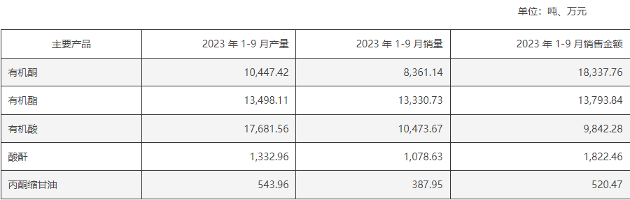 恒兴新材10月31日公告,公司前三季度有机酮销售额1.83亿元,有机酯销售额1.38亿元,有机酸销售额9842.28万元,酸酐销售额1822.46万元,丙酮缩甘油销售额520.47万元。