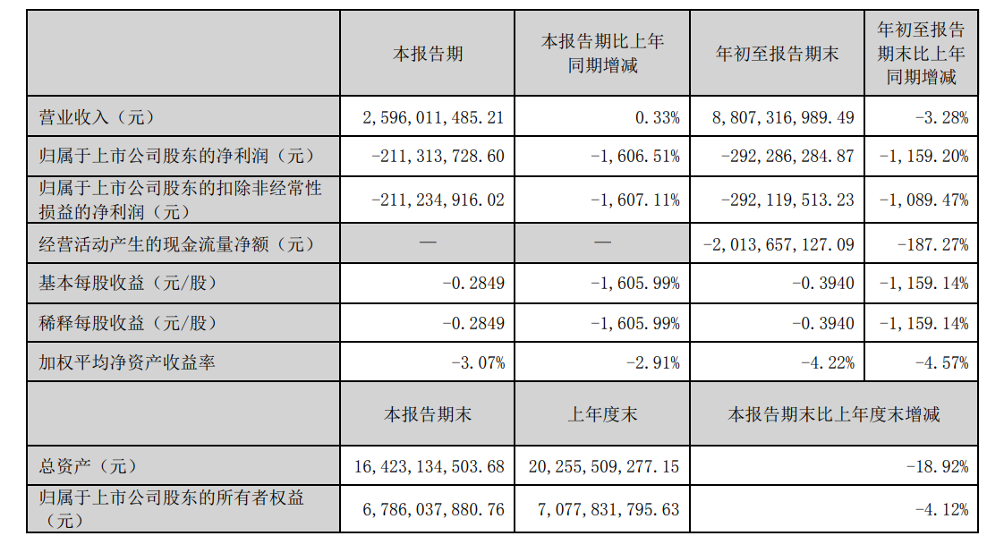 三季报显示,2023前三季度公司主营收入88.07亿元,同比下降3.28%;归母净利润-2.92亿元,同比下降1159.2%;扣非净利润-2.92亿元,同比下降1089.47%。