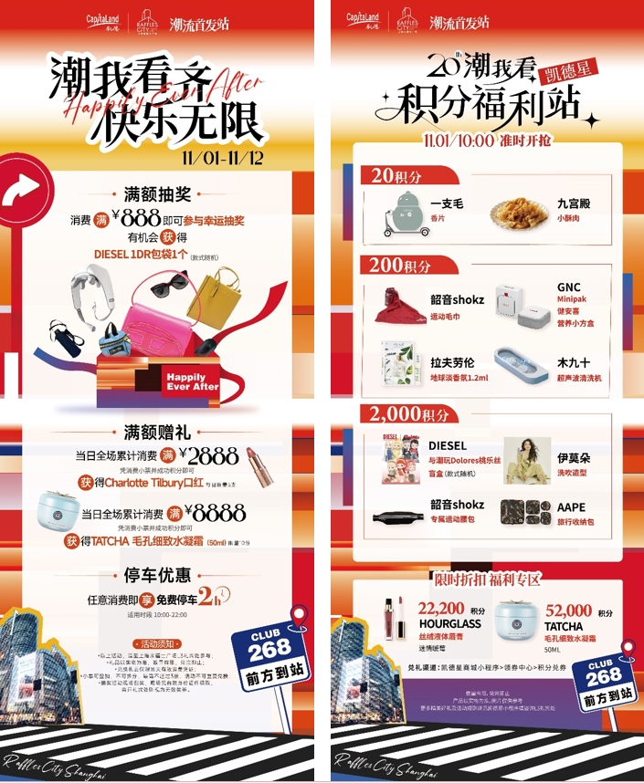 11月1日,上海来福士广场二十周年庆典正式启幕,携手知名品牌DIESEL、珀莱雅开启限时独家好礼体验,召集都市玩家同频相聚「CLUB 268」,打造全新「潮流首发站」,一起探索时髦首发灵感,尽享惊喜不断的“绮妙狂欢”之旅。