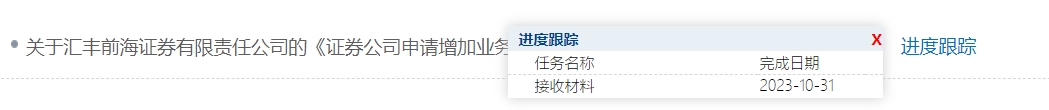 据证监会官网,10月31日,汇丰前海证券向证监会提交的《证券公司申请增加业务种类核准》资料当前的进度跟踪为接受材料,申请资料包括证券保荐、证券融资融券、股票期权做市交易、上市证券做市交易,以及通过子公司增加私募投资基金、另类投资、信息技术服务以及其他业务等。由此可见该证券正谋求发展更多的业务类型。