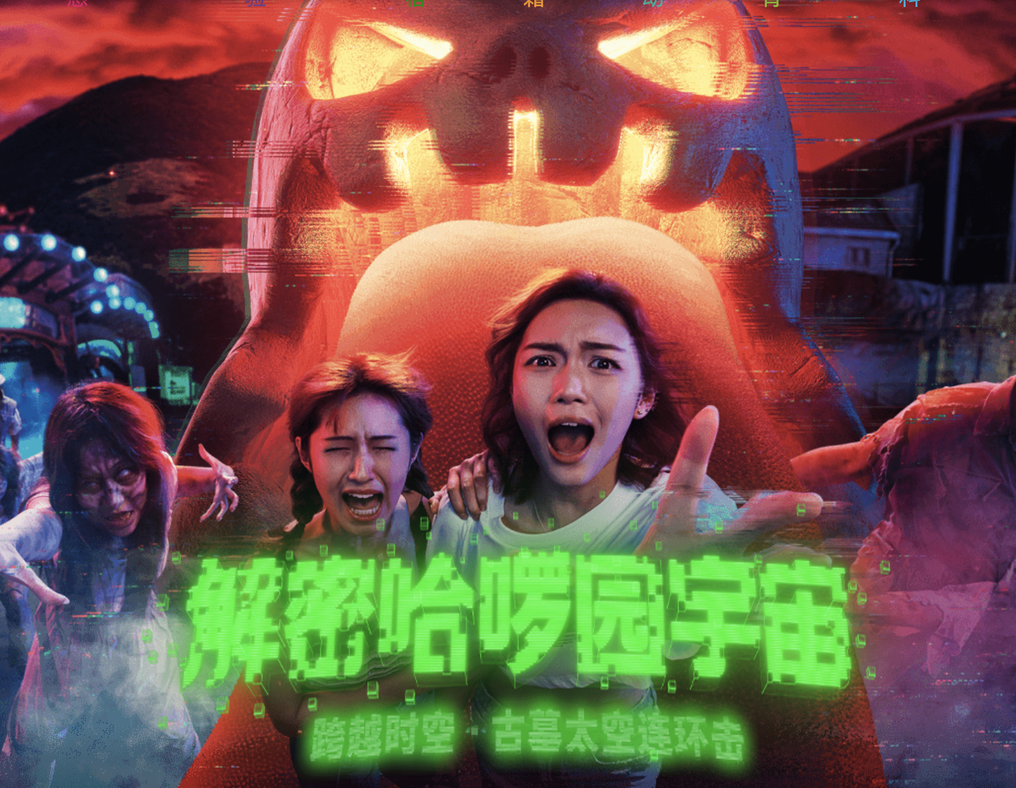 在“大街诡异酒店”开放的2007年,海洋公园的哈啰喂宣传广告“讲得鬼多终遇鬼”则更放得开:女生A在校车上忽然恶心,呕吐在女生B的书包里。女生B叫道:“喂!呕什么鬼啊?”结果一看书包,里面赫然出现一个鬼头。影片最后出现了哈啰喂全园祭的南瓜Logo,附以活动具体信息。该广告扎根于日常生活场景,又结合无厘头的艺术风格,在当时比迪士尼的广告更能引起人们的共鸣。