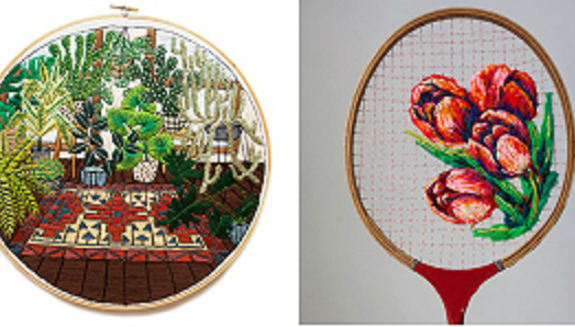 为了让自己的刺绣作品充满活力,Danielle Clough用了不寻常的画布——一个老式网球拍。她巧妙利用粗线,展现花从僵硬、交错的网中开出的意象。