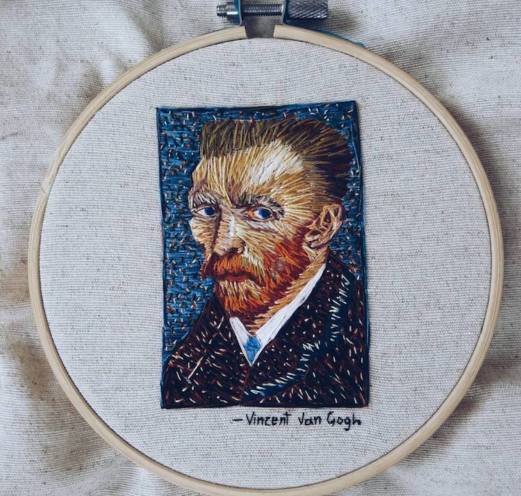 梵高的画笔纹理其实非常适合刺绣。艺术家Safae用针线创造性地模仿了油画颜料的效果。
