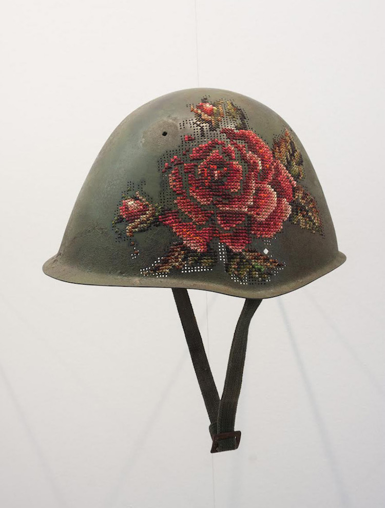 和Danielle Clough一样,Severija Incirauskaite-Kriauneviciene善于利用非常规材料。包括过去的车门、汤匙和金属桶,不过她最近开始在战争头盔上下功夫,希望能够表现出战争与和平的强烈反差。