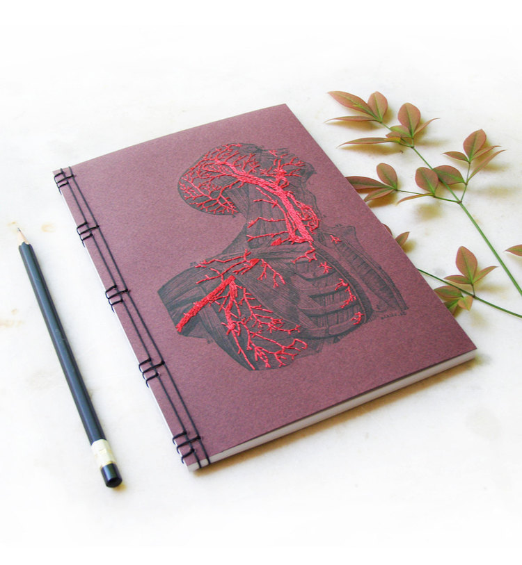 对于那些喜欢科学与文具的人,Etsy shop里面的Fabulous Cat Papers很好地满足他们的需求。这个手工笔记本用刺绣加强了封面解剖图的效果。这个本非常实用,同时也是很棒的艺术作品。