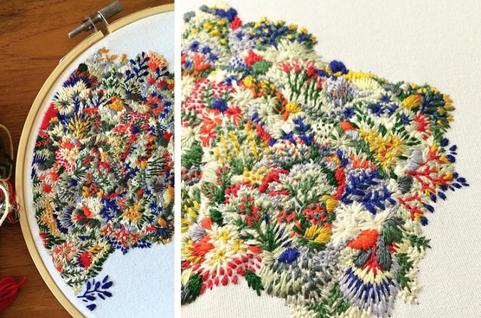 插画家Chloe Giordano把自己的刺绣做成了雕塑的感觉。线的蓬松感帮助她实现了这一点。