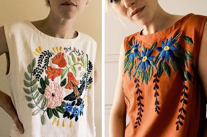 Tessa Perlow用刺绣改造旧衣服。她之前做过很久修补衣服的工作(因为不想丢弃它们),她把它们大胆地改造成了时装。衬衫只是她作品中的一部分,她的刺绣牛仔裤也非常惊艳。