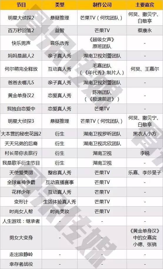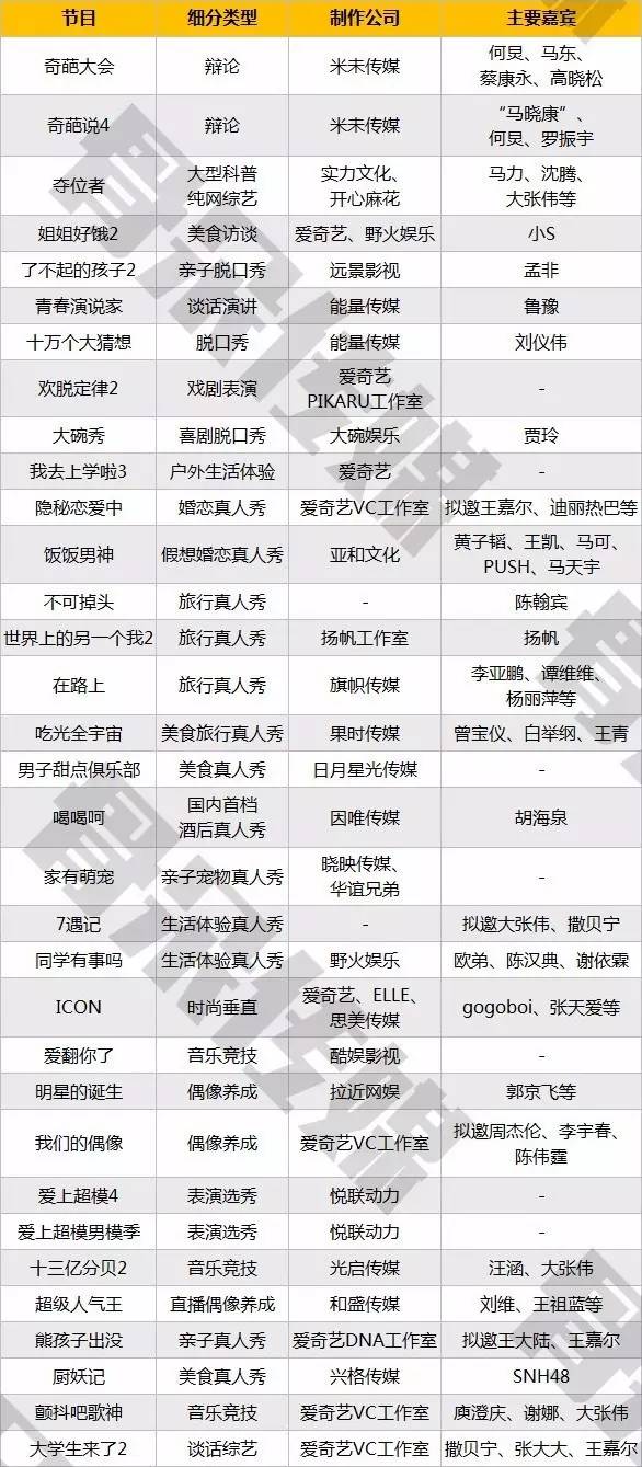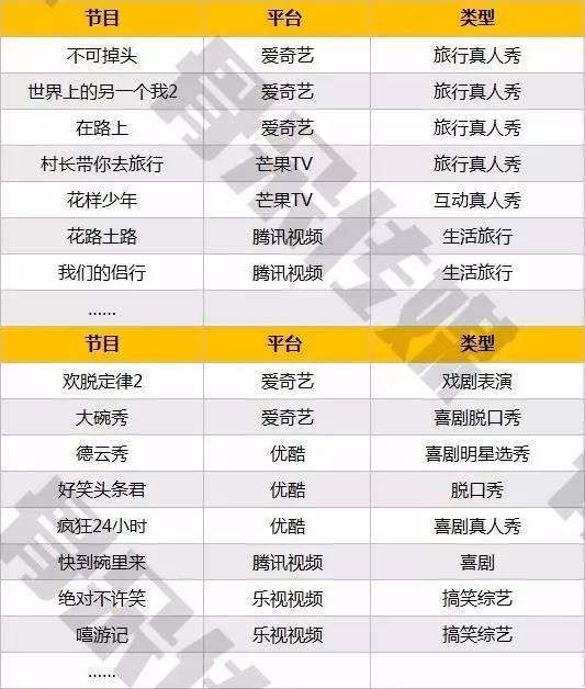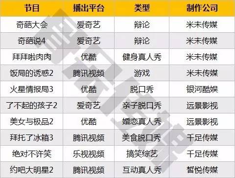1、2017年自制综艺数量预计将达108个。爱奇艺、芒果TV、腾讯视频位列前三
