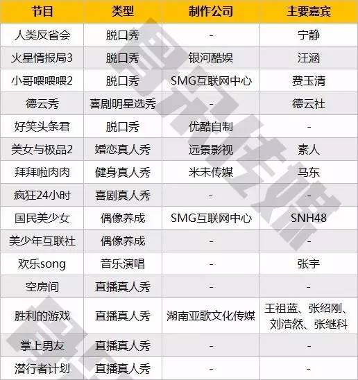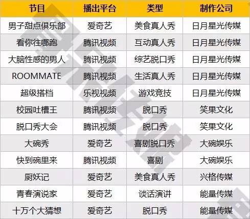 9、网络综艺制作公司出现新力量,又一批优秀的传统媒体人加入网络综艺的白热化竞争中