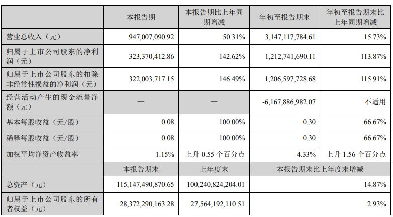 10月31日,长城证券披露了2023年三季报。数据显示,2023年前三季度长城证券实现营业收入31.47亿元,同比增长15.73%,实现归母净利润12.13亿元,同比增长113.87%。