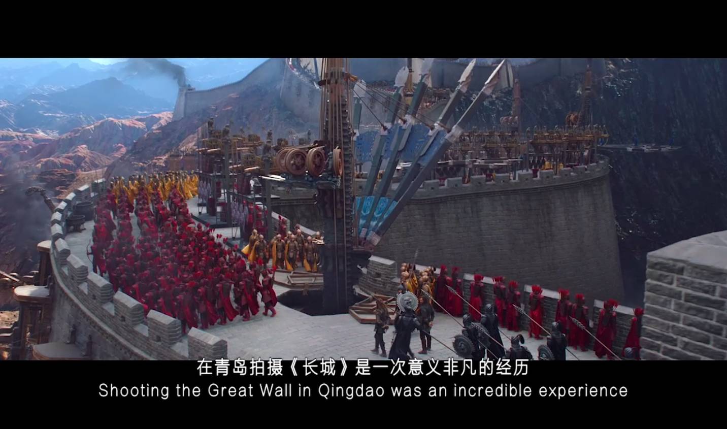 2015年3月30日,《长城》在青岛东方影都正式开机,大部分场景都在这里取景拍摄。其中大面积绿幕区拍摄,为了配合剧情需要,还特别搭建了实景“长城”,由360多个集装箱造景组成。