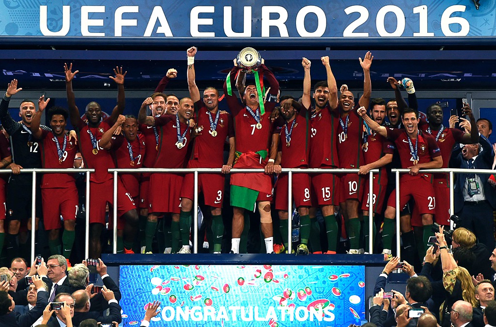 今年夏天,首次扩军为24支参赛球队的欧洲杯在法国举行,由C罗领衔的葡萄牙队最终夺冠。小组赛中,遭遇三场平局的葡萄牙队以小组第三的成绩惊险出线,随后他们加时战胜克罗地亚、点球淘汰波兰、两球轻取威尔士,又在决赛在凭借埃德尔的加时绝杀1-0力克法国夺魁,首次捧起德劳内杯。这也是葡萄牙成年男足国家队在洲际大赛上获得的第一项冠军。