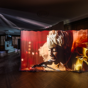 Cullinan称,当策展团队向他们有意向合作的艺术家发出邀约时,他们的直觉通常被证明是正确的,比如艺术家John Stezaker。Stezaker此前的作品多为较小尺寸的拼贴画,但他在展览开幕对谈中透露,早在1980年代,他就在英国皇家艺术院举办的一场日本艺术展中看到过屏风,并对这一艺术形式印象深刻。巫鸿的《重屏》亦启发他思考由屏风反映出的东西方迥异的艺术观念——某种程度上来说,环境是中国人创作屏风的核心,屏风不仅只是平面图像,也具有物质性,这意味着它有正面和反面,能够分隔空间。屏风的特质令他深感兴趣,因此欣然接受了邀约。他的《屏幕-屏风》让人联想起电影里的景象,将一个理想化的好莱坞家庭场景引入到保留了私人住宅元素的真实空间中。