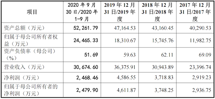 首先在业绩上,据招股书披露,2017年至2020年1-9月,新荷花的营业收入分别为2.34亿元、3.09亿元、3.64亿元和3.07亿元;净利润分别为2919.23万元、3718.83万元、4585.55万元和2468.46万元。