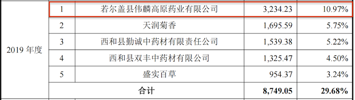 值得注意的是,新荷花2018年至2020年1-9月的第一大供应商均系若尔盖县伟麟高原药业有限公司(下称:伟麟药业)。