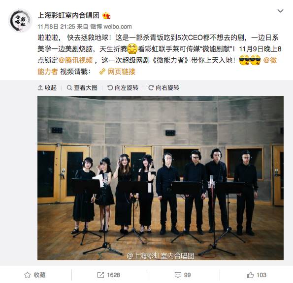 天猫应该是合唱团的第一次,但第三次似乎给了一个名不见经传的网剧《微能力者》;