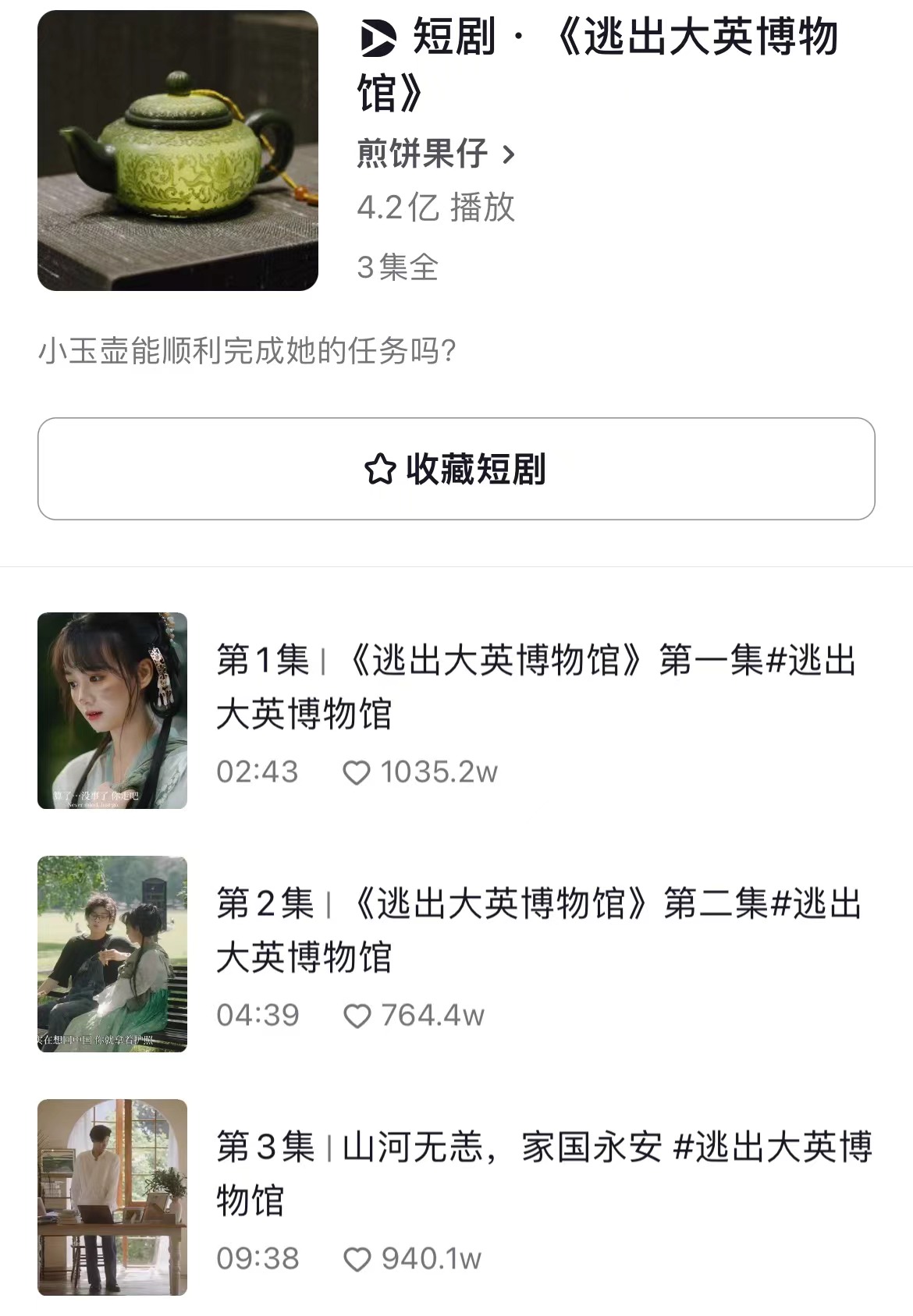 此前,小程序短剧“以小博大”,数十万投入撬动千万甚至上亿流水,不断传出造富神话。短视频博主原创短剧《逃离大英博物馆》全网热播,成为现象级微短剧作品。