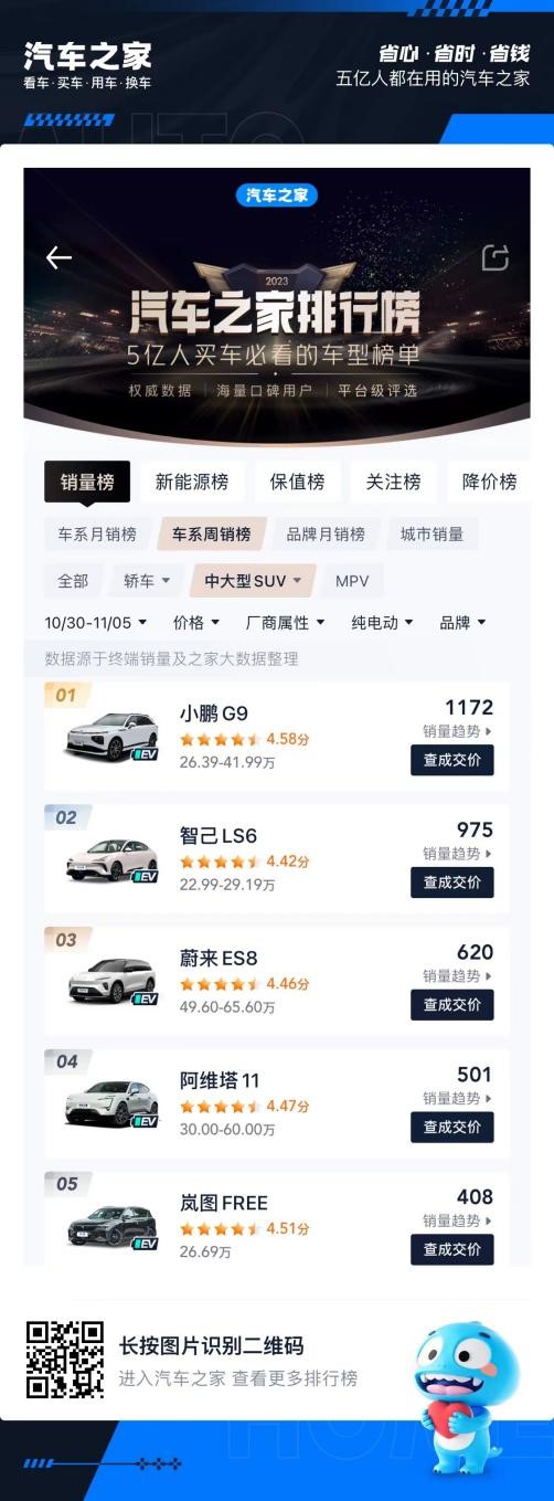 据上汽集团发布的2023年第三季度报告表明,上汽集团不仅销量保持领先,收入和利润也在稳步上升。这一增长势头背后,智己汽车的表现尤为突出,其第三款车型智己LS6在市场上引起了广泛关注,上市20天内的锁单量突破18,000辆,10月份销量迅速登上“中大型纯电SUV”销量榜单的第二位,成为品牌中的明星产品。它以领先的智能化配置和20万元级的高性价比,重新定义了中大型智能纯电SUV的市场标准,吸引了众多消费者的目光。