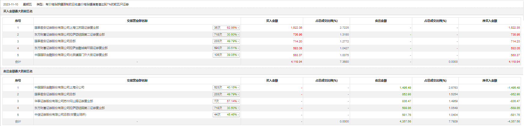 11月10日,云煤能源今日涨停,龙虎榜数据显示,上榜营业部席位全天成交8477.5万元,占当日总成交金额比例为15.16%。其中,买入金额为4119.94万元,卖出金额为4357.56万元,合计净卖出237.62万元。