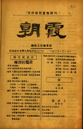 1922年,从棉科专门学校的赵景深没有服从分配进工厂工作,他看到马千里办的《新民意报》的《文学副刊·朝霞》上内容“五花八门,简直什么都有”,就毛遂自荐当主编,报社同意了,给他安排好住宿和办公的地方,于是他主编了半年副刊,同时还成立了文学团体“绿波社”,成员有焦菊隐和赓虞,和北京师大附中的曦社是兄弟团体,彼此通信,交换稿件。