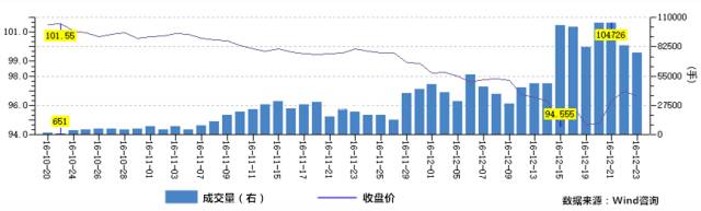 近两个月来,由于货币政策趋于审慎,且通胀预期升温,国内债券市场出现了一波快速调整。债市的大幅调整加之随之而来的资金赎回压力,可能会形成负反馈,导致市场流动性紧张的局面延续,甚至牵连其他金融资产的价格。下图为“T1703:十年期国债期货”近2个月的走势,我们可以看到伴随着价格快速下跌的同时,成交量也明显放大,加之国海证券“萝卜章”债券代持等市场事件,大大加剧了本轮债市调整的恐慌心理。