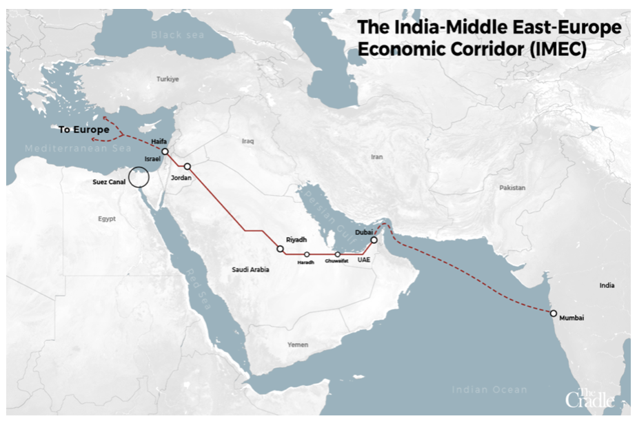 作为2023年G20印度主场外交的主要成果之一,印度、美国、阿联酋、沙特阿拉伯、法国、德国、意大利和欧盟政府在9月的G20期间签署了谅解备忘录,就设立印度-中东-欧洲经济走廊(IMEEC)达成一致。该经济走廊旨在通过促进亚洲、波斯湾和欧洲之间的互联互通和经济一体化来促进经济发展,但普遍被视为美国和印度对“一带一路”倡议的回应。
