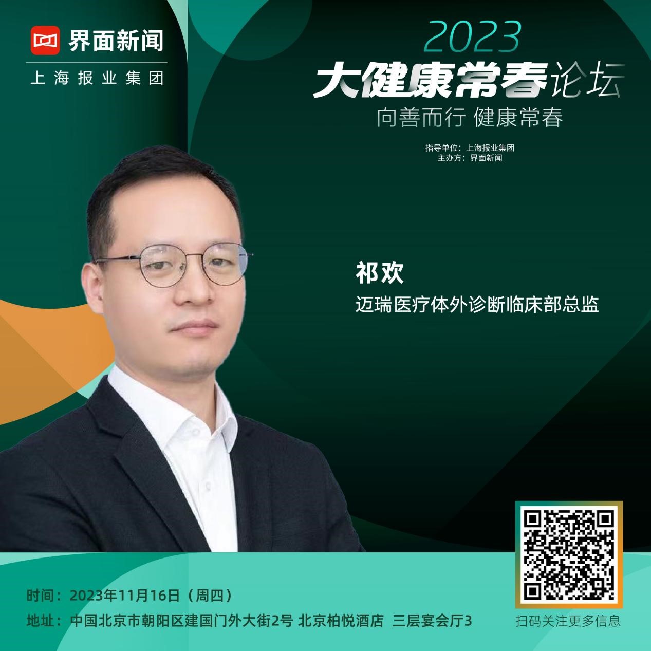 2023年11月16日,【大健康常春论坛】将在北京柏悦酒店隆重举行,我们将以“向善而行、健康常春”为主题,邀请行业顶级专家学者、一线企业家、医疗服务机构负责人、投资机构负责人等,让最深刻的洞察者给大家答疑解惑,让我们对未来有更清醒的认知与判断。宏观经济正缓慢复苏,当此关键时刻,我们更需要静下心来认真听一听他人的洞见。