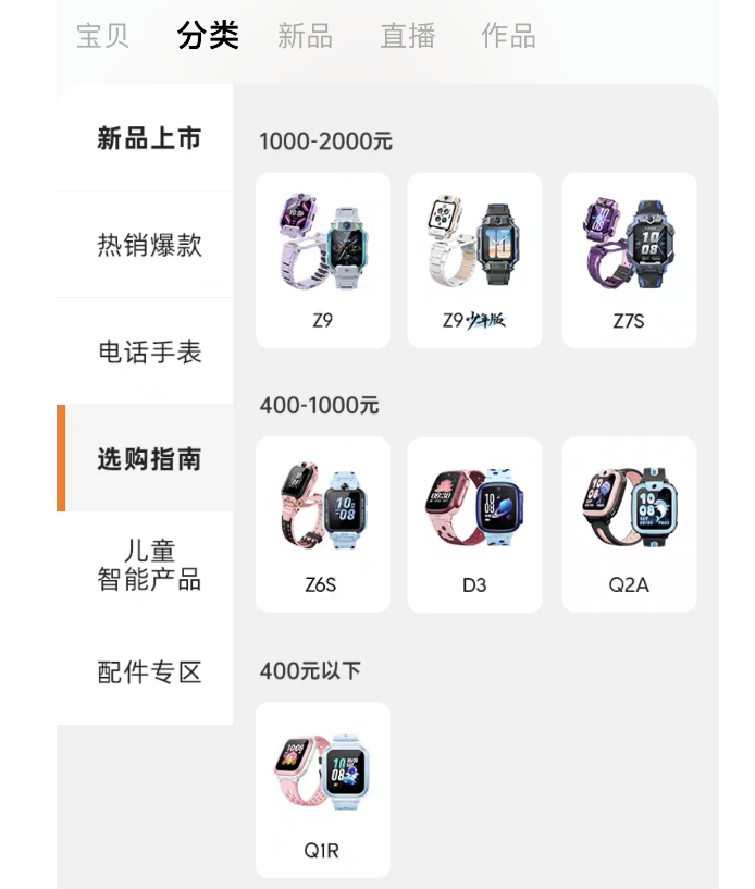 同时,小天才还继续丰富完善新品类中的产品,从初代的Y系列到现在的Z、D、Q系列,为消费者提供更多选择。价格分级明确,400元以下的性价比款、400-1000元的中端款还有1000-2000元的高端款,不同预算都能买到合适的产品,从400元到2000元,也为小天才的用户提供了升级和更新换代的空间。