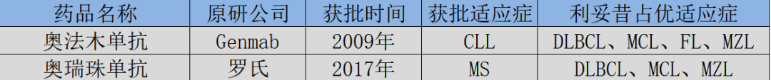 首先对利妥昔展开冲击的是Genmab公司的奥法木单抗,后被诺华拿下商业化权益。它是全球第一个上市的全人源抗CD20单抗,于2009年在美国获批上市,用于治疗慢性淋巴细胞白血病(CLL)。