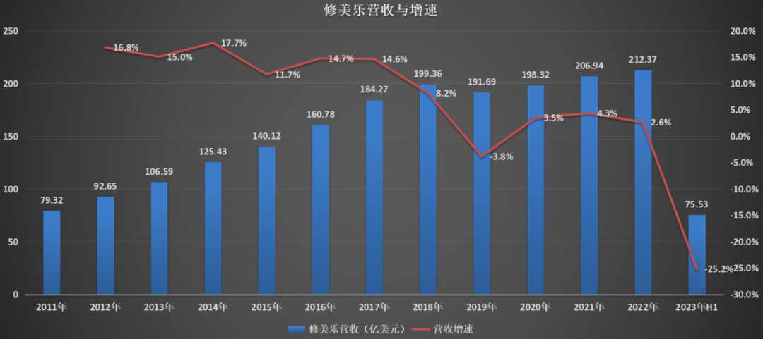 图:修美乐营收与增速,来源:锦缎研究院