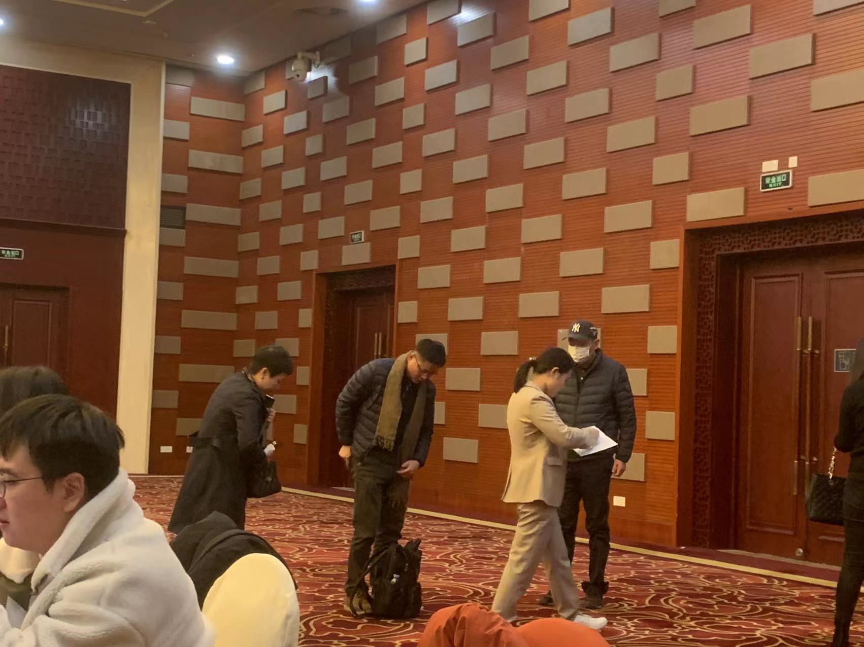 下午一点半左右,一楼等候区内,大约已经有百余人落座等待。现场没有显示企业桌牌,企业代表大约成群落座。每一家企业的现场参与人数并不多,大都在2-3人左右。同时,在一楼的大堂,还有一些站立等候的人。