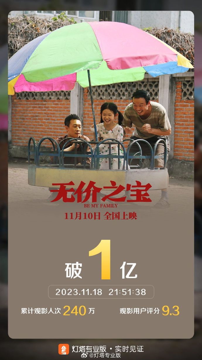 据灯塔专业版实时数据,截至11月18日21时51分,影片《无价之宝》票房突破1亿元。