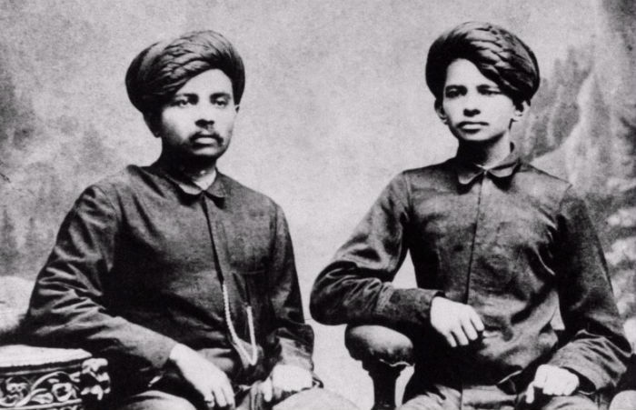 25. 莫罕达斯·甘地(右)与哥哥拉克西米达斯在1886年的合影。(翻译:王慧男 编辑:曾宇)
