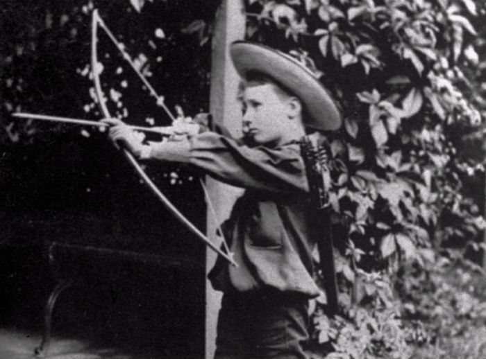 22. 美国前总统罗斯福童年时练习射箭的照片,大约拍摄于1890年。
