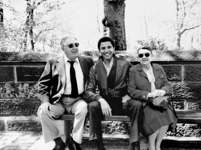 21. 1980年,奥巴马与外祖父母史丹利·艾莫尔·达勒姆和玛德琳·达勒姆的合影。照片拍摄于纽约。