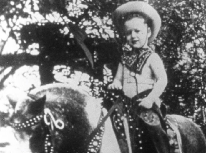 16. 这是美国前总统比尔·克林顿童年时的骑马照,照片拍摄于他幼年时在阿肯色州的家附近。