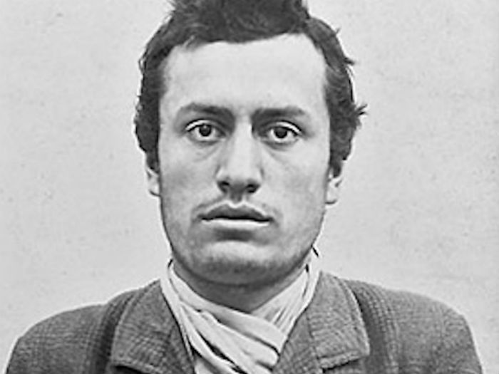 11. 意大利法西斯领导人墨索里尼。这是他在1903年被瑞士警方逮捕后拍的犯人登记照。