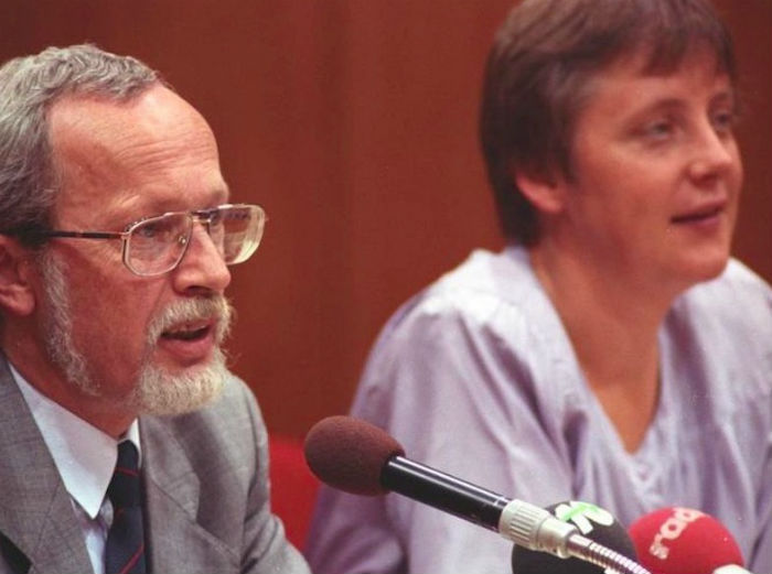 4. 1990年,如今的德国总理默克尔与她在基督教民主联盟的同僚德梅齐埃的合影。