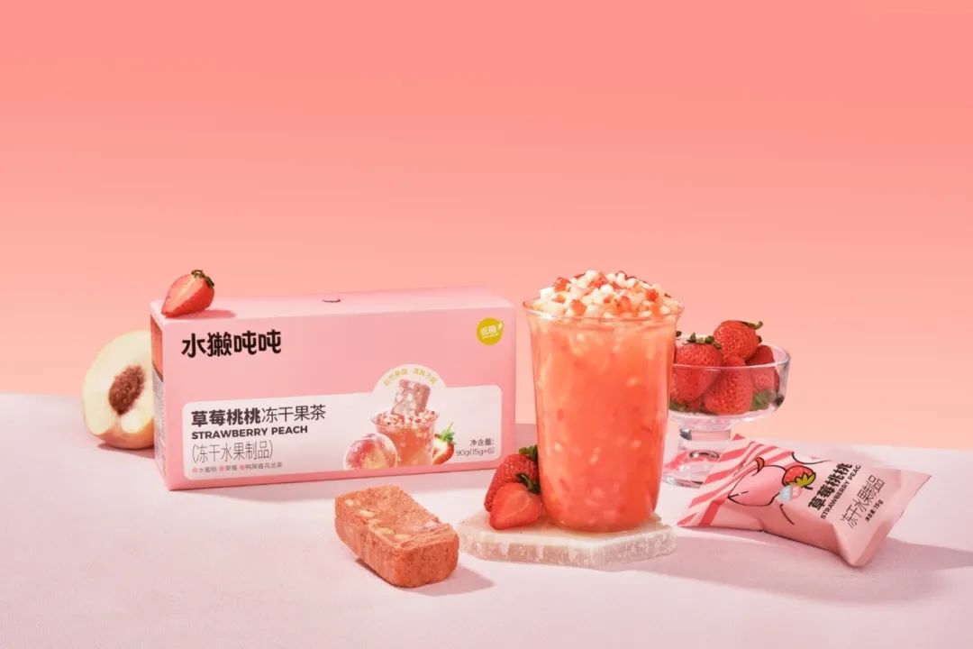 草莓和桃子元素,是这些年食品饮料界一直重点关注的人气水果,水獭吨吨以“地标水果”为独特卖点,将健康好喝的果茶与地域特色水果相结合,为消费者带来了令人期待的全新体验。