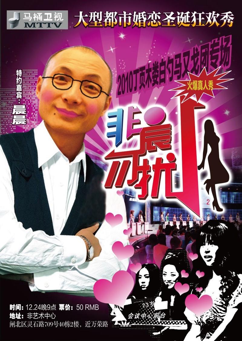 那场演出,陆晨说,既然是party,一定要好好热闹一下。演出费顶马就不挣了,他用那五千块钱在北京请了个真的马戏团来表演杂技。马戏团带了个女主持,陆晨就穿着粉红色的西装在台上跟她一起主持串场。观众又疯了,来看顶马演出怎么一会儿顶缸,一会儿变魔术,还有翻跟头转碗?!一直到最后陆晨才唱了一首歌,翻唱《北京欢迎你》,改成了《上海欢迎你》。