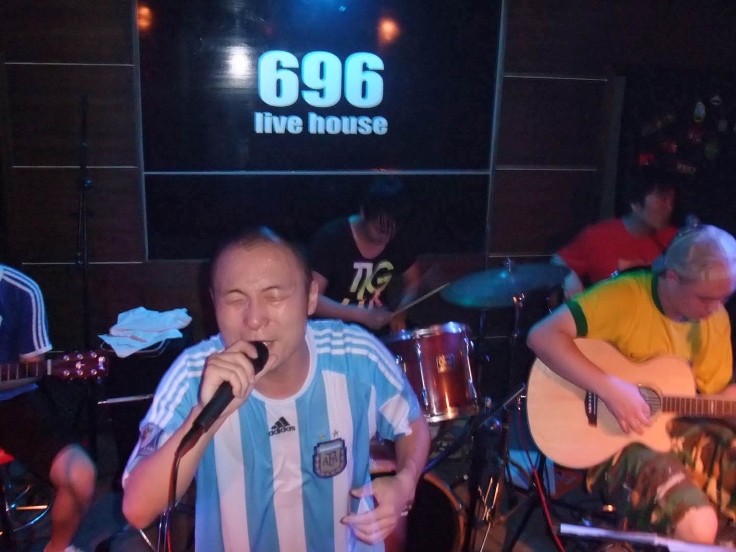 他的Livehouse只有一个小客厅大,那天挤进来两百多人,站得密不透风。后面一百多人什么都看不到,就开始看世界杯直播。那场是德国队四比零血洗阿根廷,陆晨穿了件梅西的球衣。我们演着演着,还没到高潮,后面“哗”一阵喧哗,我们就停下来问,“怎么样怎么样,几比几了?”后来他们说,想让哪个队输顶马就穿哪队球衣。