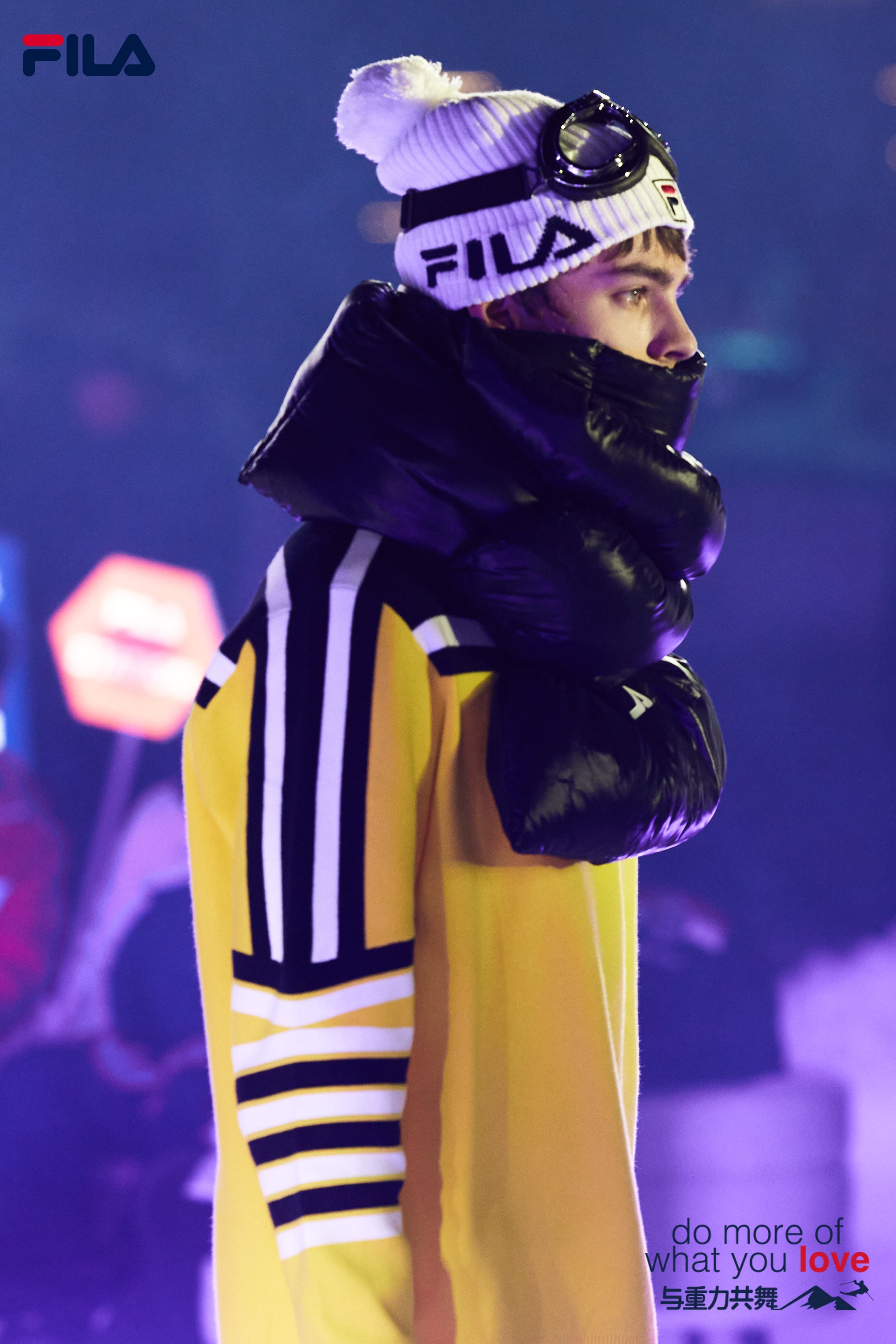11月21日,FILA在吉林万科松花湖度假区举办FILA逐光·驭雪发布秀,最新官宣的FILA代言人杨幂穿着最新的FILA五方联名系列出席活动现场。