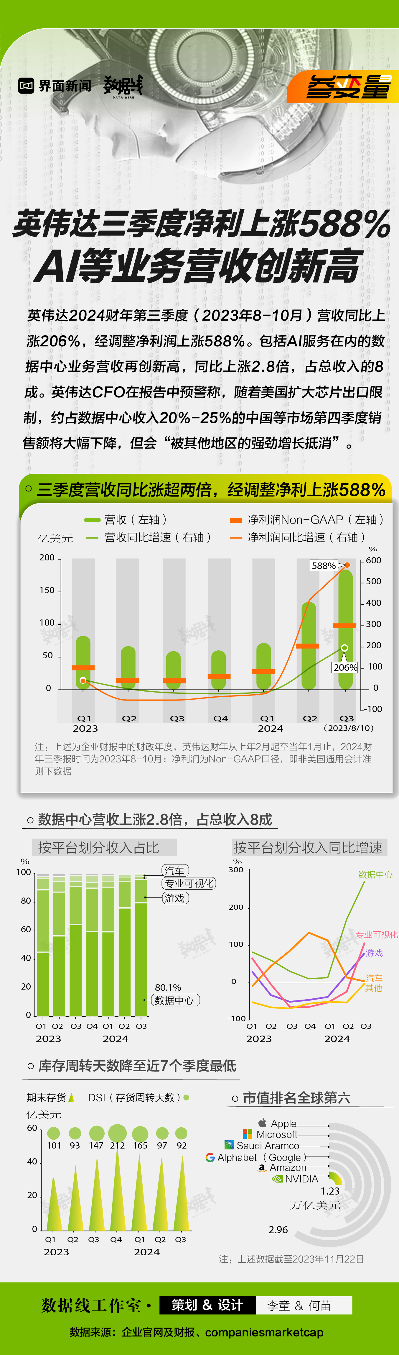 参变量 | 英伟达三季度净利上涨588%,AI等业务营收创新高