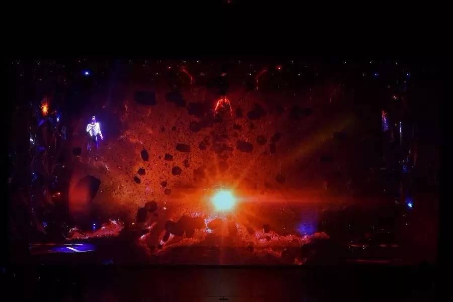 这是一种前所未有的新奇体验,它突破了传统的戏剧舞台,并且将空间延伸至观众席,打破了舞台与观众之间的界限,整个剧场就像宇宙的黑洞,你只需要全身心的感受其中的风云变幻。