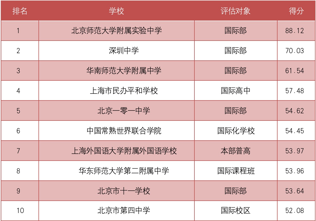 在排名对象上,该榜单不包含外籍人士子女学校。有些国际化学校的资质是培训而非全日制学校,该排行榜对这些学校做了区隔。如果该校隶属某个培训机构,只是作为特色服务的均不视为国际化学校,不纳入榜单中。如果学校虽然为培训资质,但是独立运营,且参照常规学校方式运作,则视同为学校。